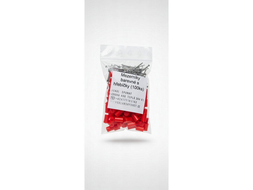 Mezerníky slouží k vymezování včelí mezery mezi rámky a brání samovolnému pohybu při přesunech úlů a medníků. Na každý rámek se s pravidla připevňují čtyři mezerníky a vyrábějí se v různé barvě. Balení obsahuje 100 ks mezerníků se 100ks hřebíčků.Buďte první, kdo napíše příspěvek k této položce.